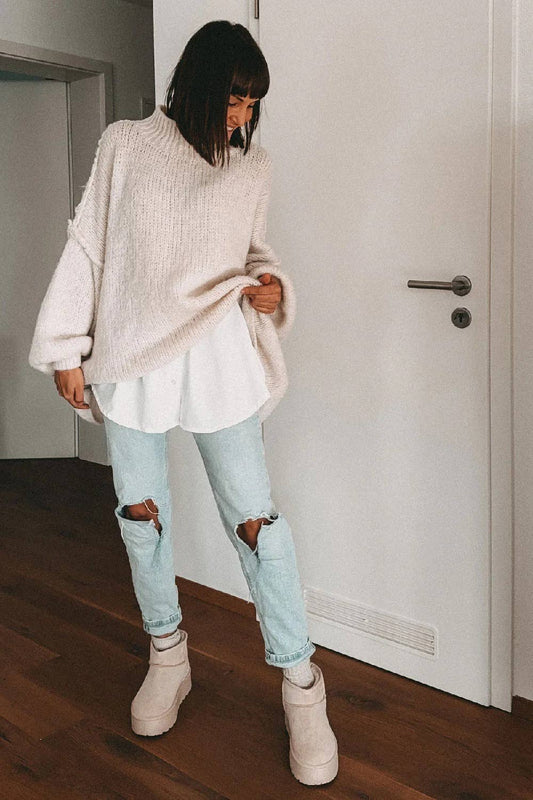 Cream Ultra Mini Platform Women Faux Fur Slip-On Ankle Boots