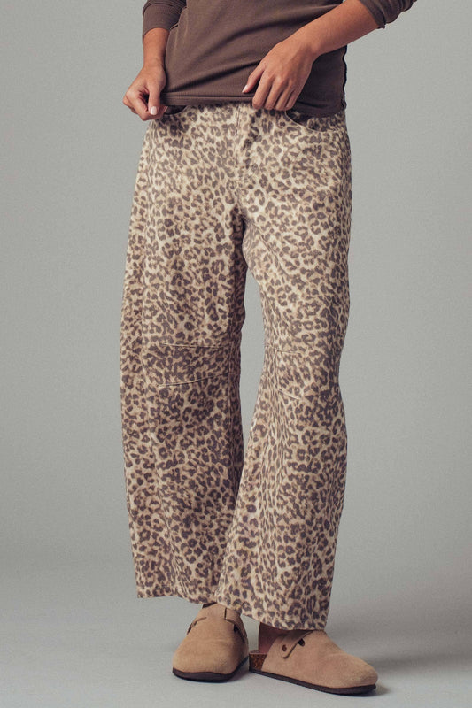 0705-4554 | Leopard Print Wide Leg Camo Pants