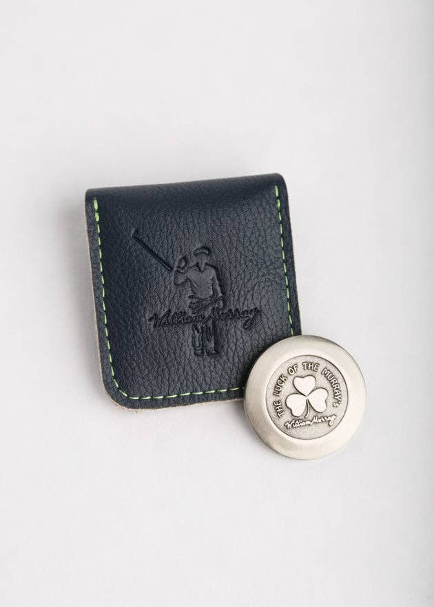 One of our favorite offerings as well as our most-requested item: the official William Murray ball marker is finally available. Complete with a leather pouch featuring an embossed William Murray logo, the ball marker itself features the William Murray logo on the front and a clover on the back.