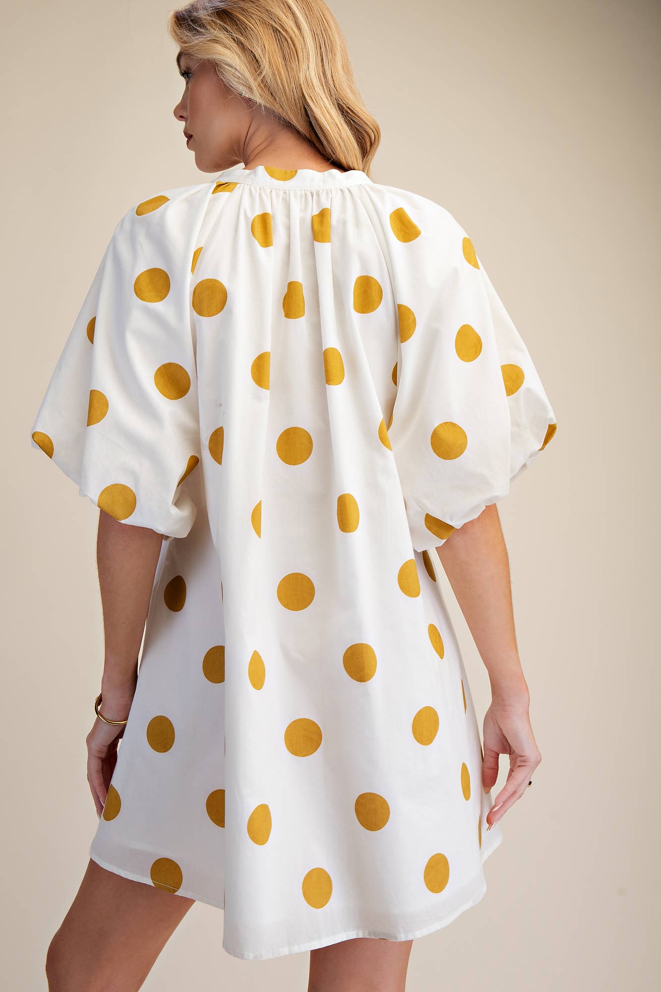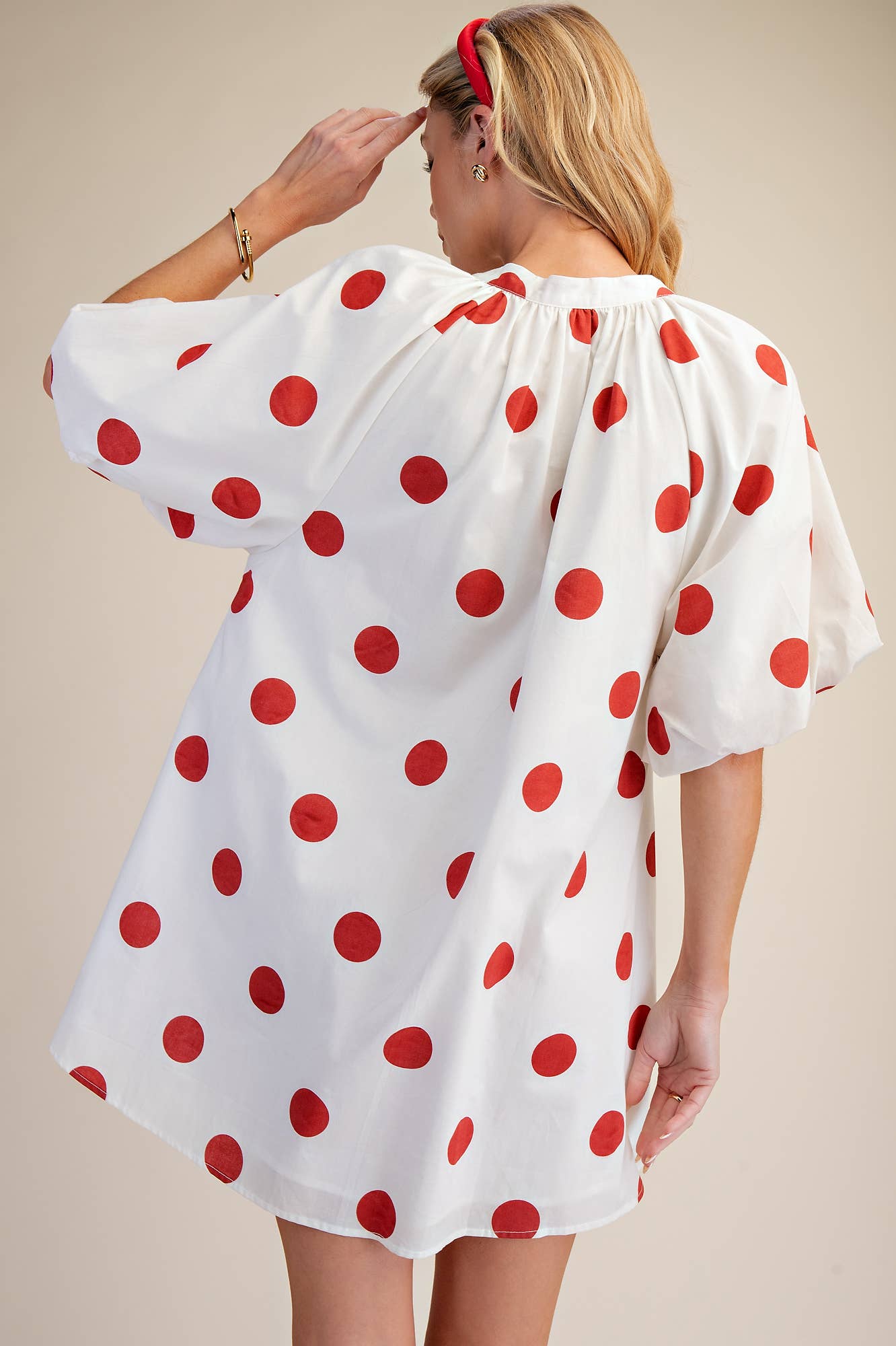 Puff-Sleeve Mini Shift Dress