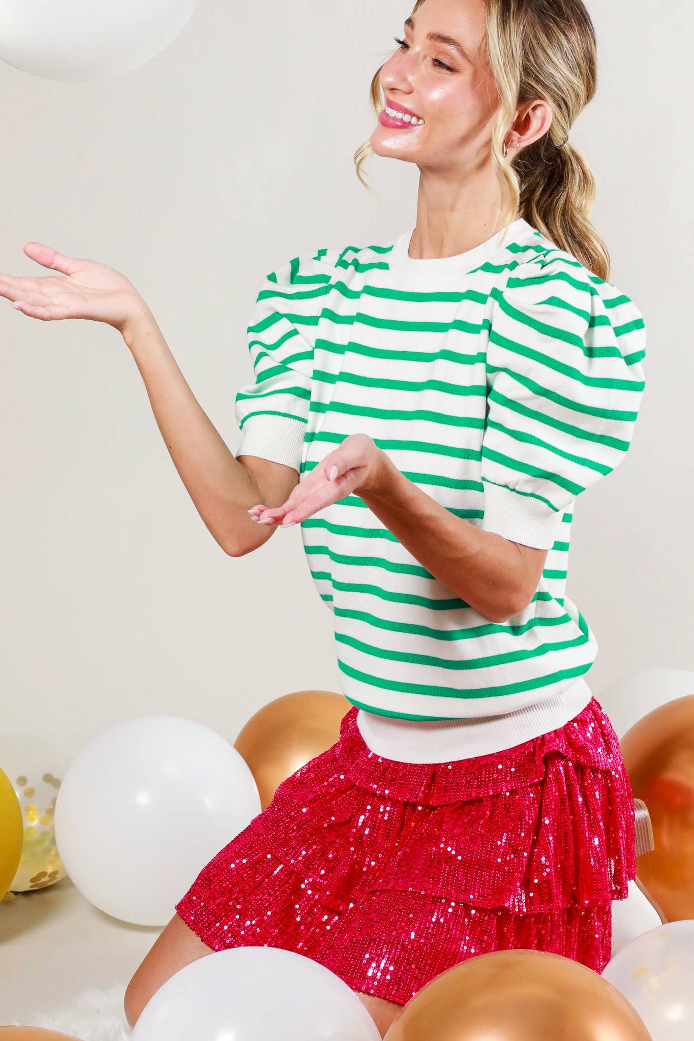 - Short puff sleeve ribbed hem