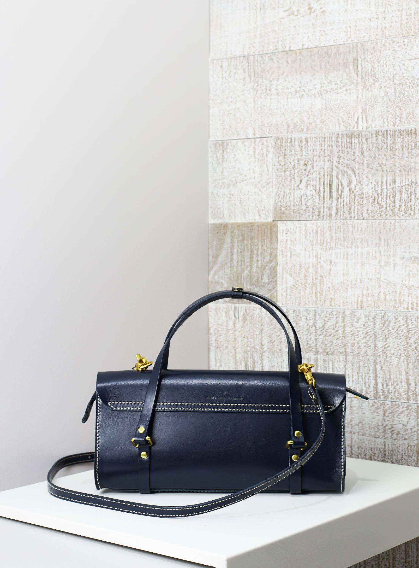 A new addition to the ‘Vive’ collection, the Baguette Satchel features a chic rectangular design while maintaining an elegant structured form. Handmade with the highest quality genuine Italian leather and multiple rich vegetable-tanned colours for you to choose from. With a double belt style handle detailing and Japanese brass push lock feature, this handbag is unique and functional. The top handles can be snapped together making it easy to grab while you’re on the go.