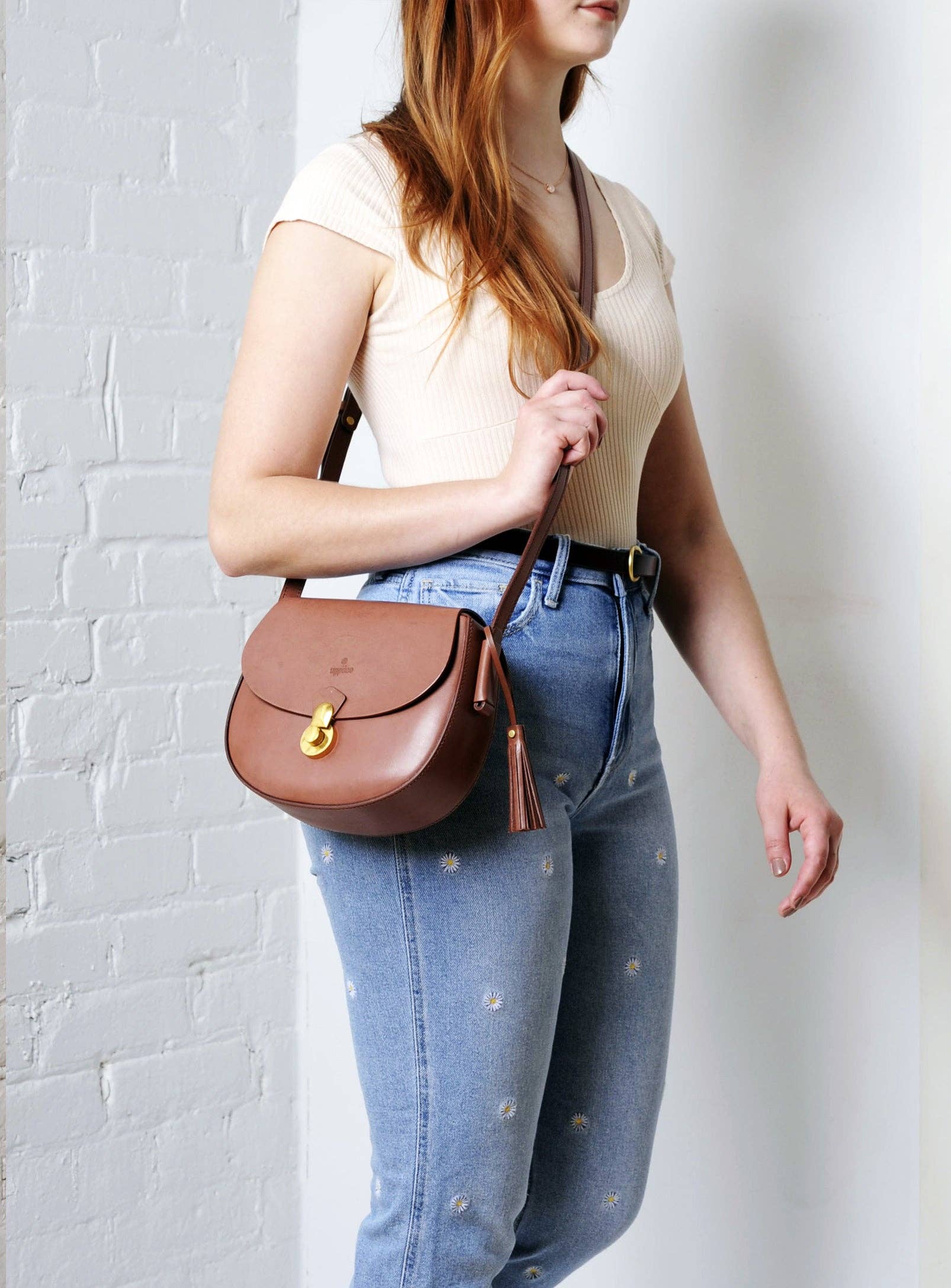 "Vive' 2.0 Saddle Crossbody Bag is an revised design from our previous saddle bag. It still keeps the classic and timeless clean line design with exceptional martial quality. Hand-dyed marbling Italian Veg-tanned-natural leather (cowhide) is resilient with lots of depth. Leather colour will become richer and leather more suppler over time. Front flap closure with solid brass hardware, spacious interior makes your daily routine in a breeze. A perfect classy bag for travel and everyday routine.