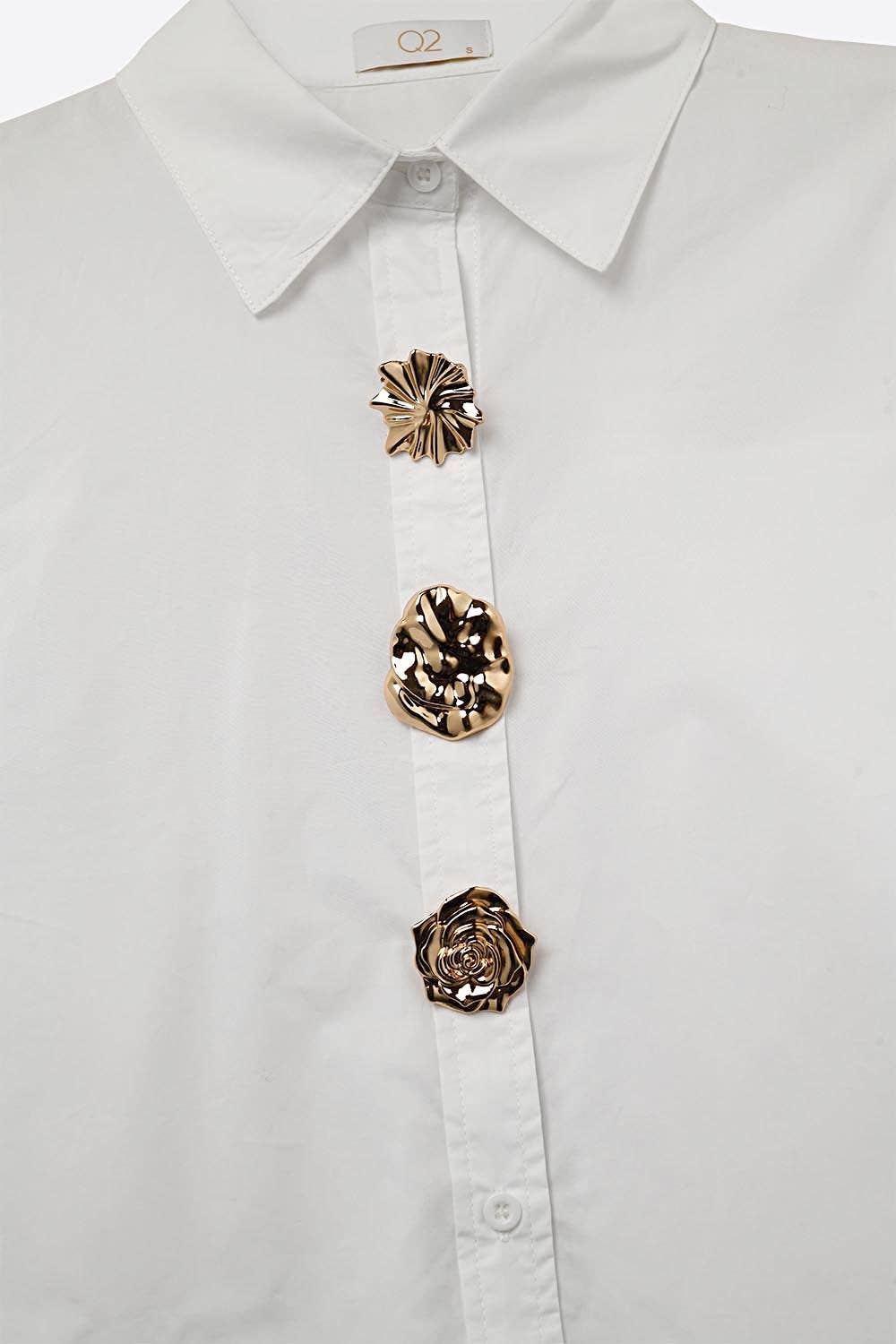 White relaxed poplin Cotton Shirt with Decorative Gold Buttons